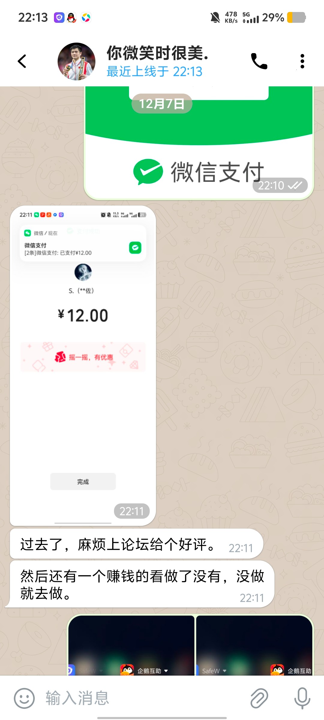 没有注册过企鹅互助的,然后注册完成新手任务。注册好了使用微信登录,上级要是3366515,然后safex联系可乐群里管理员,你微笑时很美领12红包。完成新人任务即可,还可以自提15左右,15+12=27,猪脚饭,挂逼烟都有了。
