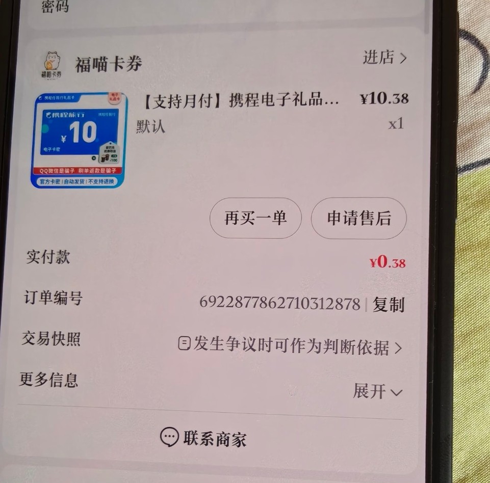 商城搜索携程卡 10.38的即可先扫码 然后绑卡再点击钱包 速度多号多撸 猪脚饭