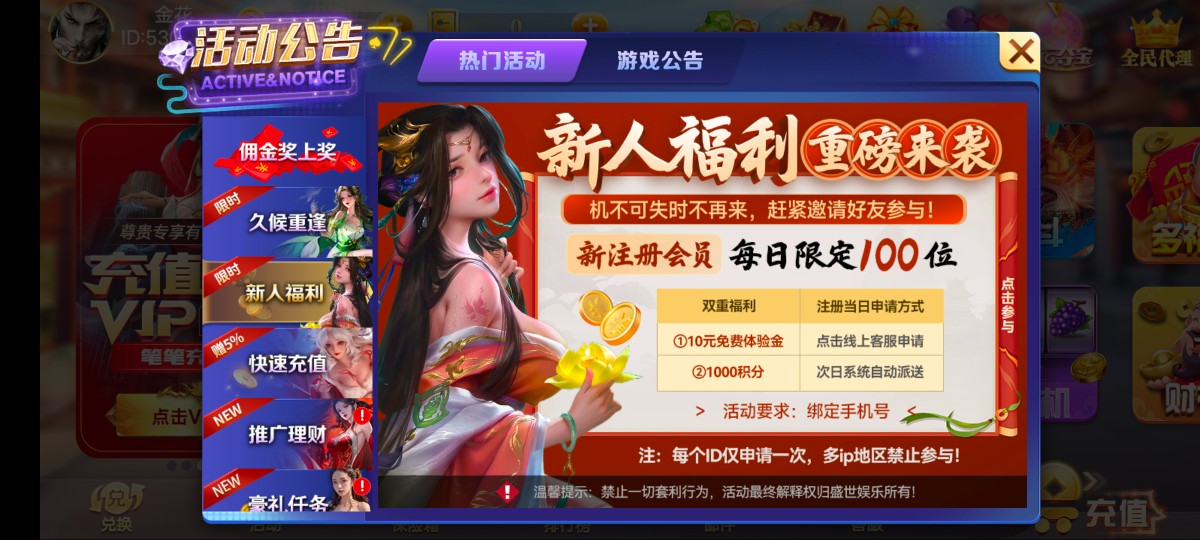 新人注册绑定银行卡或支付宝,找客服申请即可