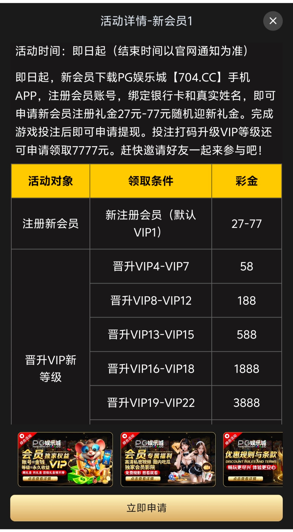 下载APP注册即送27-777元彩金,仅需PG电子5倍流水,打满100即可出款!推荐下载APP,领彩更轻松!