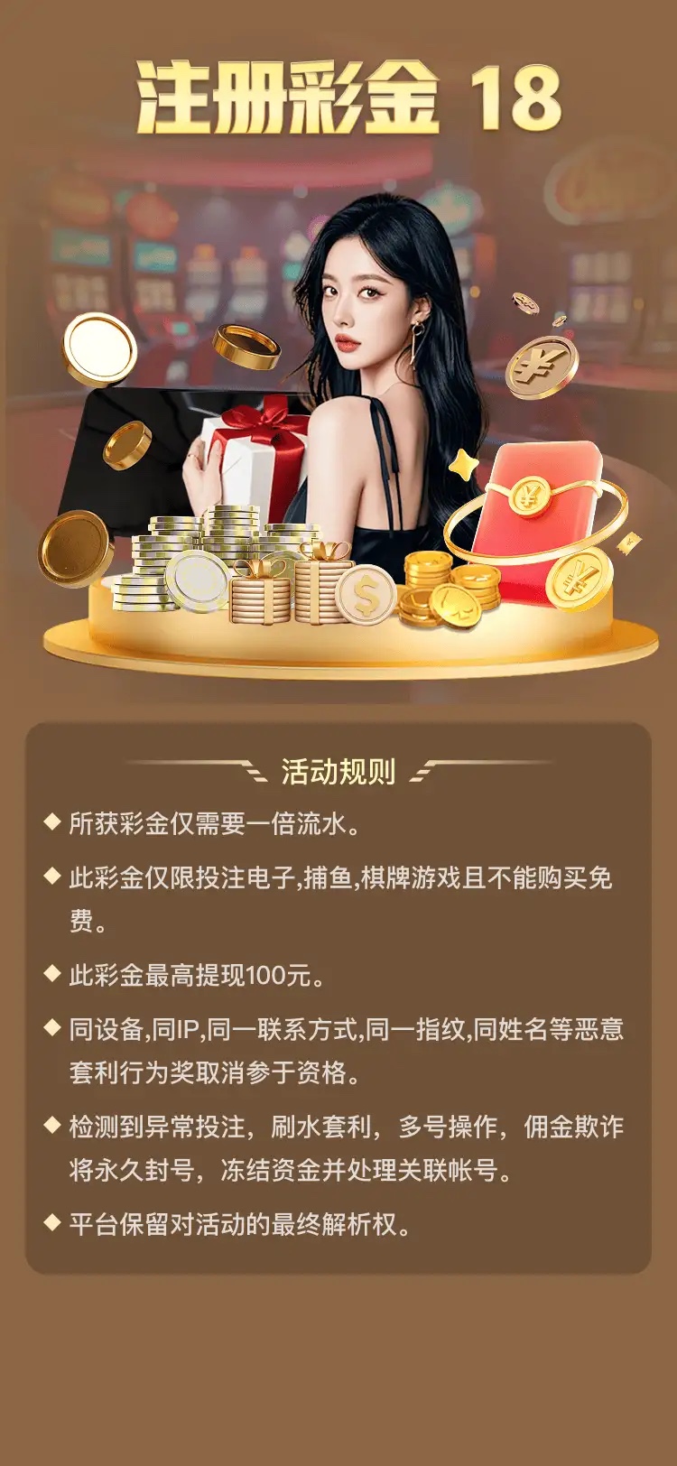新用户注册绑定信息送18 仅可娱乐电子游戏满100即可提款代码商场自助领取