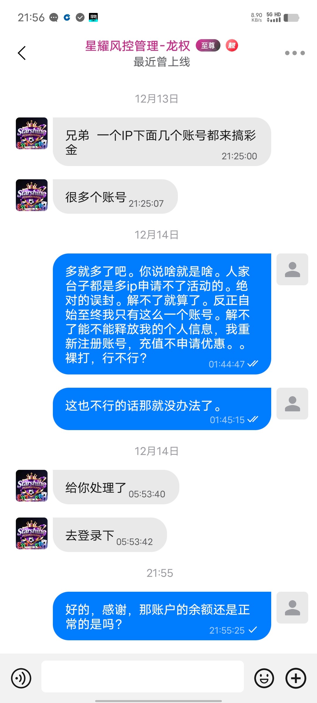 我是8号玩的1+1打到1400提现封我号了,然后跟星耀风控专员扯皮10来天,既然给我解开了。然后玩了一下提了1600秒到账。有人被封号的可以联系尝试尝试