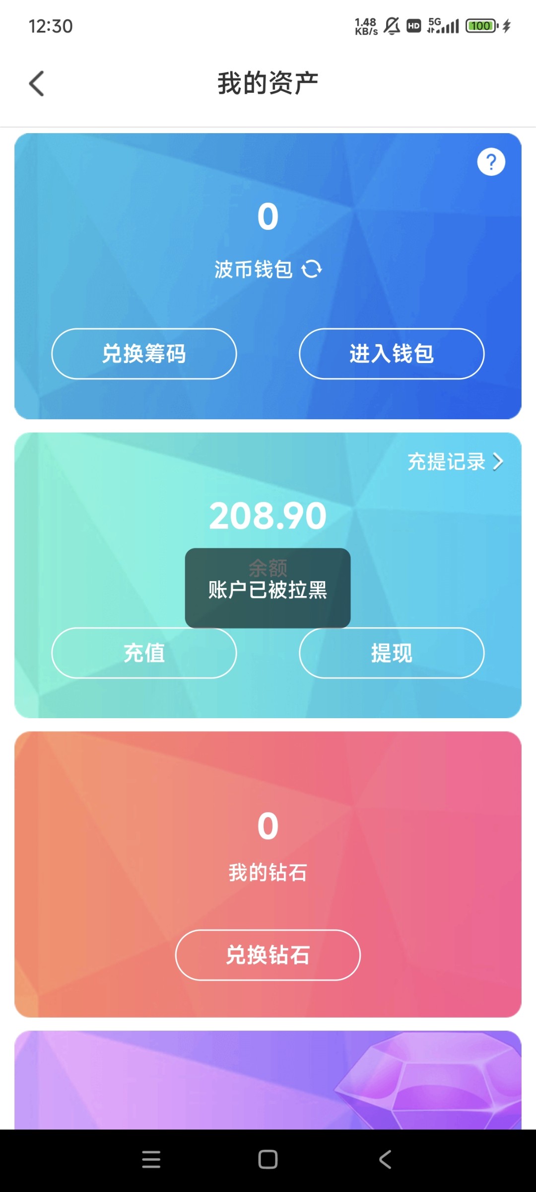 我是自己充了几百块钱提现,他都给我黑了。