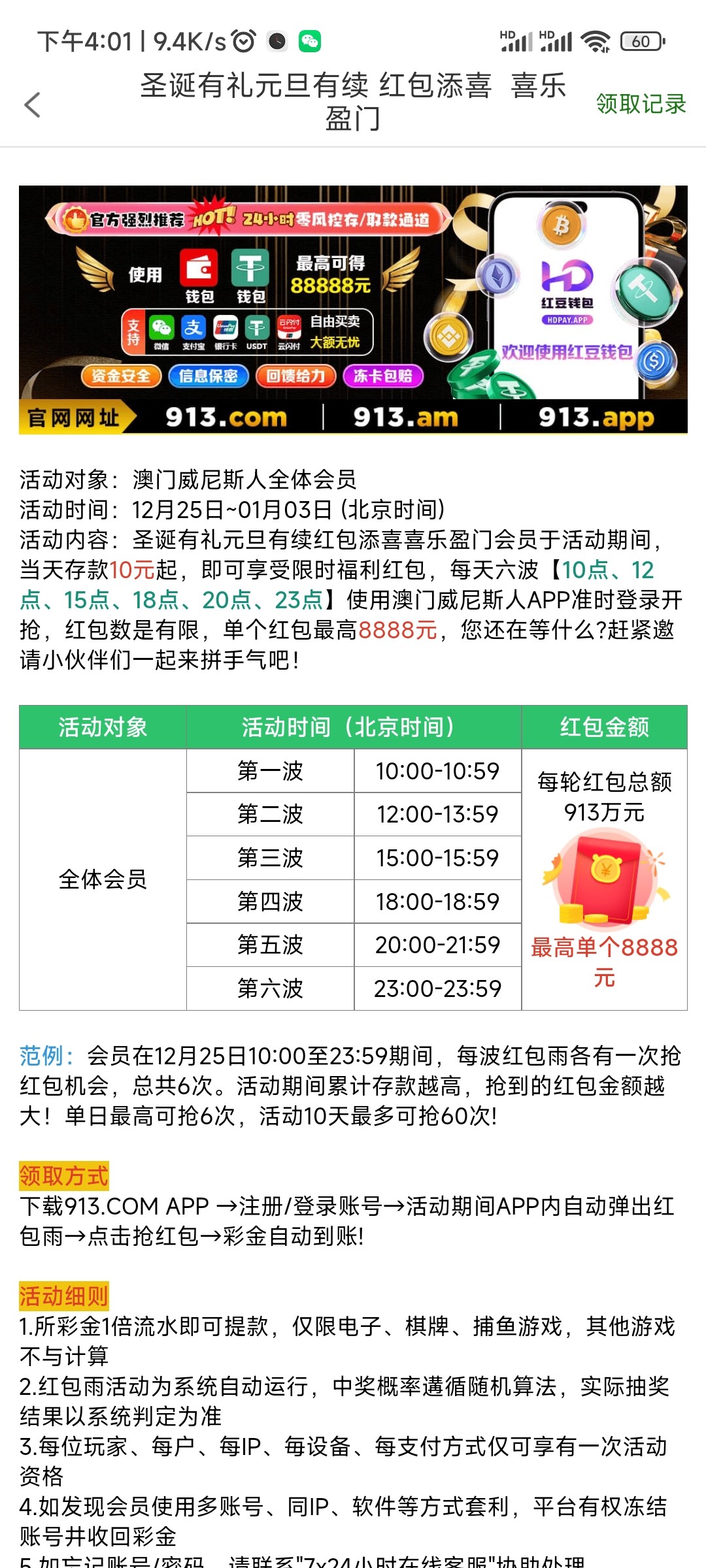 【913威尼斯】每天红包