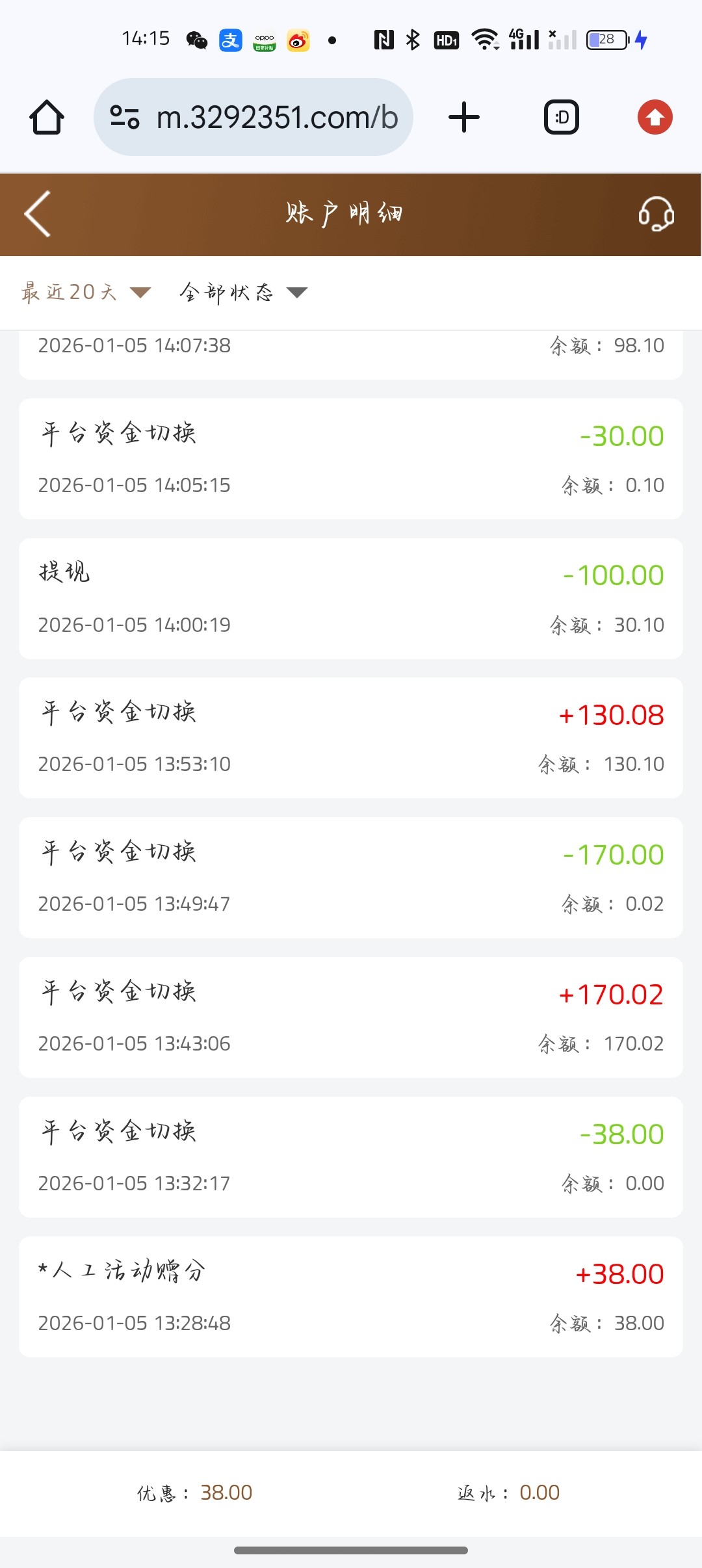 昨天给我打的电话,特邀送38三杯水(注册刷新余额自动到账,不需要联系客服申请)连续送3天,这是电话客服说的,我昨天拿下2张,今天拿下1张全都到账了,和一起玩是一个模板,出款应该看脸,领到了的提不了不要中出我,没有领到的也不要中出我,求放过,我只是分享一下而已,望各位老哥理解
