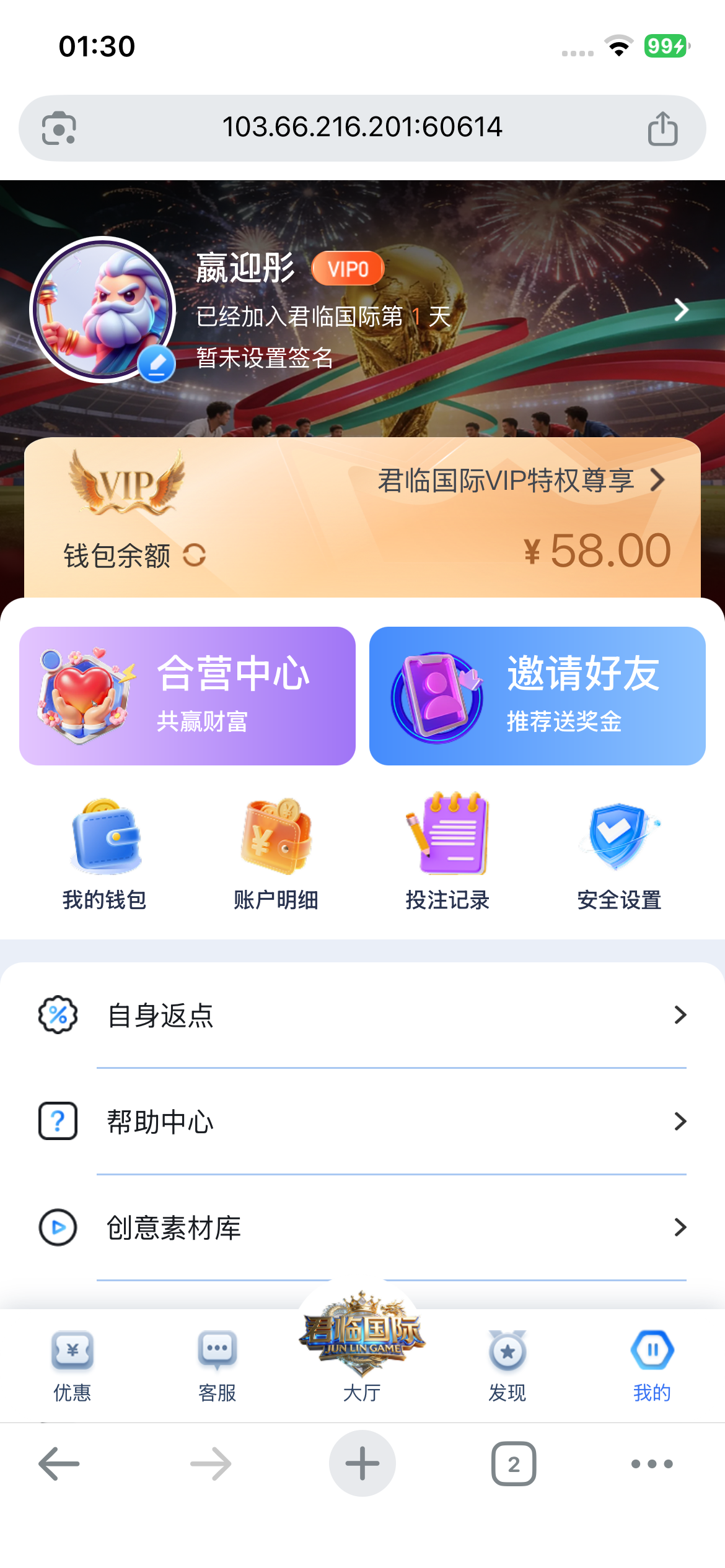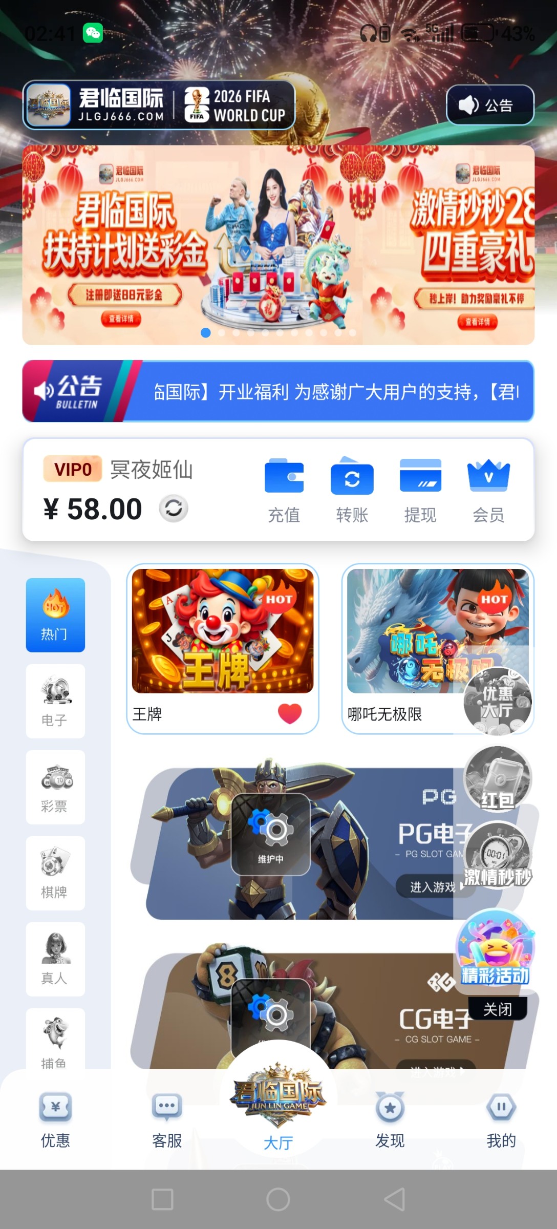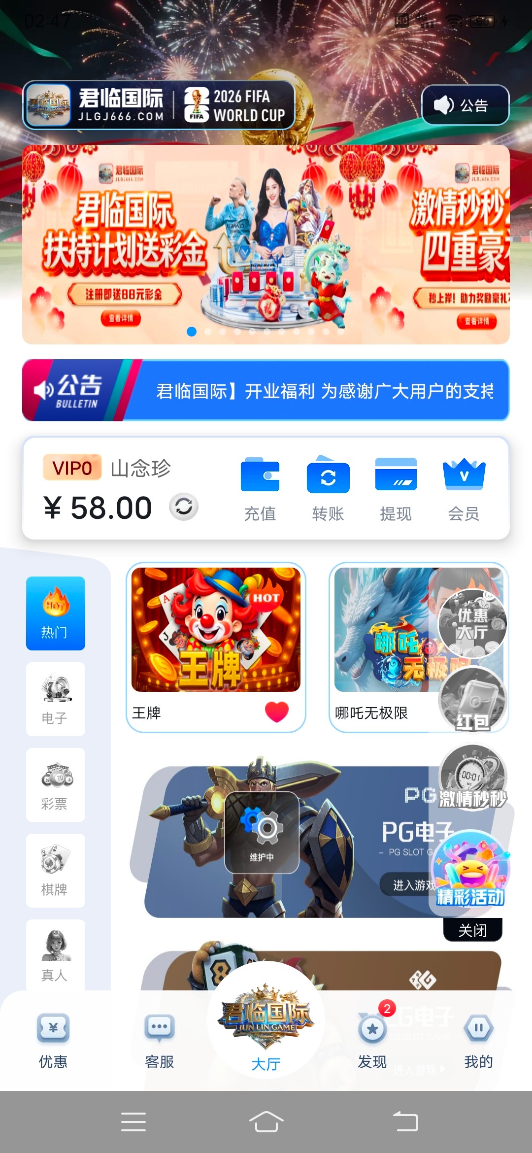 NG旗下君临国际送500份58